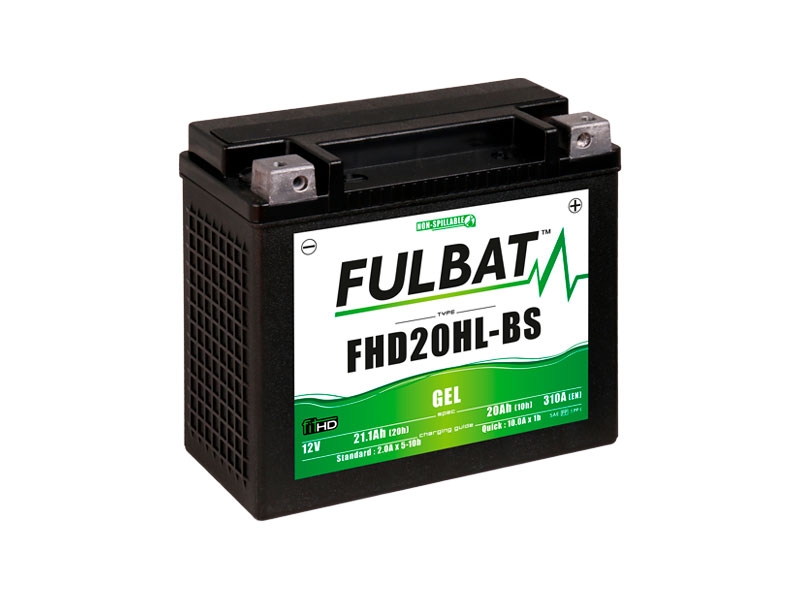 Batería Fulbat FHD20HL-BS (H.D.) GEL. La batería de moto Fulbat FHD20HL-BS (H.D.) GEL es ideal para quienes buscan un producto de calidad que ofrezca la máxima seguridad, un elevado rendimiento y además tenga un precio económico. Dotada con la tecnología (VRLA) libre de fugas y lista para utilizar sin ningún tipo de manipulación, ya que viene totalmente activada por Fulbat.