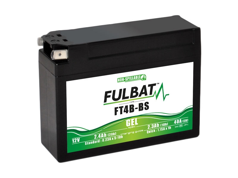 Batería Fulbat FT4B-BS GEL. La batería de moto Fulbat FT4B-BS GEL es ideal para quienes buscan un producto de calidad que ofrezca la máxima seguridad, un elevado rendimiento y además tenga un precio económico. Dotada con la tecnología (VRLA) libre de fugas y lista para utilizar sin ningún tipo de manipulación, ya que viene totalmente activada por Fulbat.