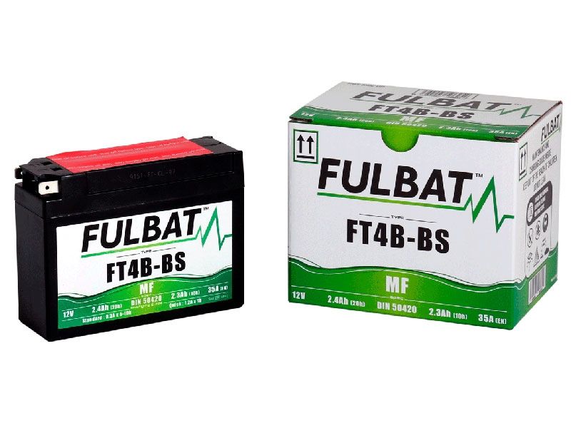 Batería Fulbat FT4B-BS SM. La batería de moto Fulbat FT4B-BS SM pertenece a la gama MF libre de mantenimiento. Esta gama de baterías están fabricadas con la tecnología AGM para proporcionar un óptimo rendimiento así como una larga vida útil, destacando su excelente precio. El fabricante Fulbat las entrega con un paquete de ácido para activarla antes del primer uso, aunque debido a la nueva ley, Ramirez Moto la entregará con el ácido ya incorporado y cargada lista para ser usada. adversas. Este tipo de baterías solo permite una instalación vertical.