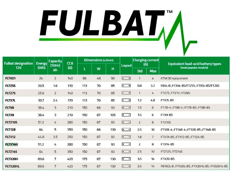 Para evitar cualquier tipo de información errónea, adjuntamos un catálogo PDF de baterías de moto Fulbat 2021-2022 con todas las características, especificaciones, medidas, etc.