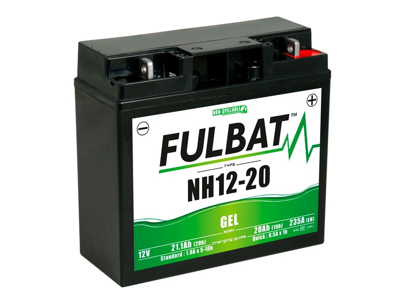 Batería Fulbat NH12-20 GEL. La batería de moto Fulbat NH12-20 GEL es ideal para quienes buscan un producto de calidad que ofrezca la máxima seguridad, un elevado rendimiento y además tenga un precio económico. Dotada con la tecnología (VRLA) libre de fugas y lista para utilizar sin ningún tipo de manipulación, ya que viene totalmente activada por Fulbat.