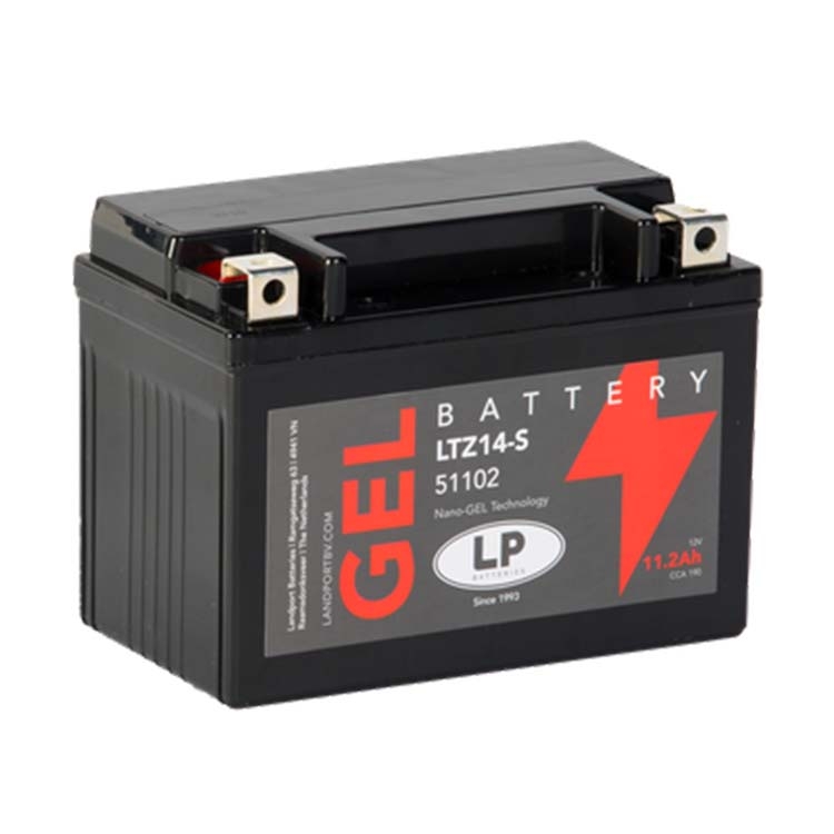 Batería Landport LTZ14-S (equivalente YTZ14S) — GEL 12V 11,2Ah, 190A EN. La Landport LTZ14-S es una batería de arranque GEL de 12V y 11,2Ah (10h), con activación de fábrica (Factory Activated): llega lista para usar, sin llenado ni carga inicial. Es 100% estanca (a prueba de derrames), ofrece más potencia de arranque que una batería convencional y admite instalación inclinada hasta 90°. Muy adecuada para motocicletas modernas y vehículos powersports.