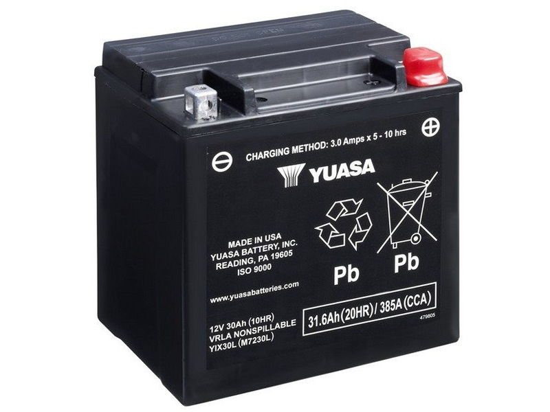 Batería Yuasa YIX30L High Performance Maintenance Free. La batería Yuasa YIX30L es totalmente hermética, por lo que no necesita ser rellenada. Mantiene el voltaje más tiempo y necesita menos recarga en tiempo de espera y de almacenamiento. La batería Yuasa YIX30L posee un diseño a prueba de derrames, significa que virtualmente no hay la posibilidad de fugas e incrementa la potencia de arranque.