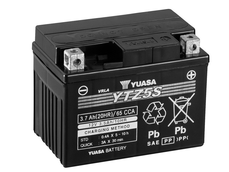 Batería Yuasa YTZ5S. La batería Yuasa YTZ5S de elevadas prestaciones, aporta un 30 % más de amperios de arranque, gracias a su diseño radial y a placas adicionales. Yuasa significa más potencia, menos mantenimiento y mayor duración. La batería Yuasa YTZ5S MF High Performance (libre de ácido) está diseñada para durar hasta 3 veces más que las bateriás convencionales. La resistencia excepcional a la vibración hace de Yuasa la batería más fiable del mercado actual.