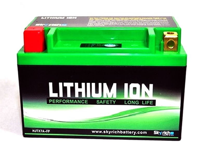 Batería litio Skyrich HJTX7A-FP. La batería de litio para moto Skyrich HJTX7A-FP está diseñada con la mejor tecnología del momento. No es de extrañar que fabricantes de primer nivel como son Ktm, Husqvarna y Ducati las utilicen como equipamiento de serie en algunos de sus modelos de moto. Skyrich diseña y fabrica baterías con tecnología propia patentada, ofreciendo un producto muy seguro, que no contamina y con una potencia superior a la de las baterías convencionales.