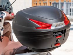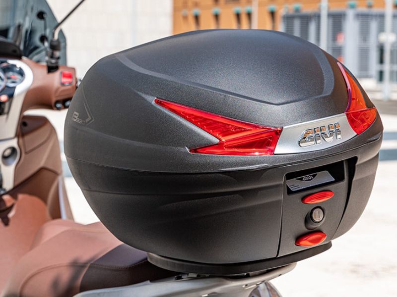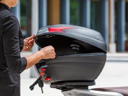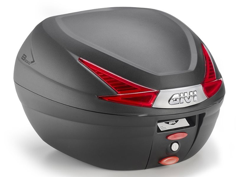 Maleta Givi B330 Monolock (Negro) con catadrióptico rojo. Elegante baúl de 33 litros de capacidad con sistema de fijación Monolock, de color negro con catadióptrico rojo. La maleta Givi B330N Monolock permite para albergar un casco integral. Su tamaño es perfecto para motos de pequeña y mediana cilindrada y usuarios que circulan mayormente por ciudad. El cierre Security Lock permite cerrar la tapa superior con solo hacer una leve presión. Incluye kit y parrilla universal. Dimensiones baúl Givi B33 Monolock: 436 mm (ancho) x 440 mm (profundo) x 314 mm (alto). Carga máxima 3 Kg.