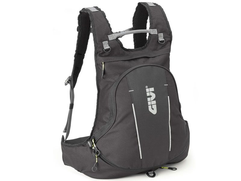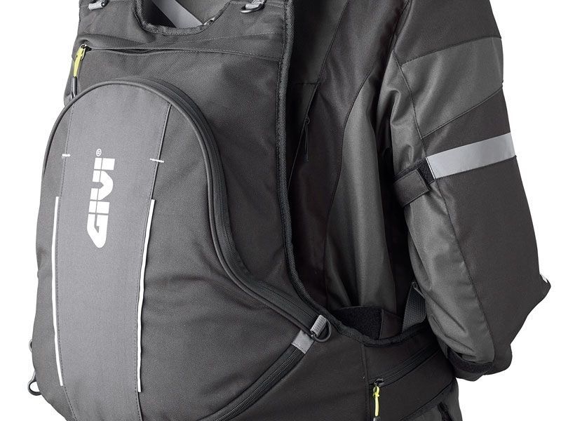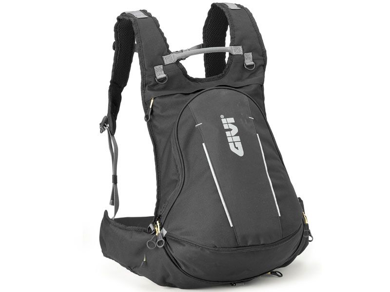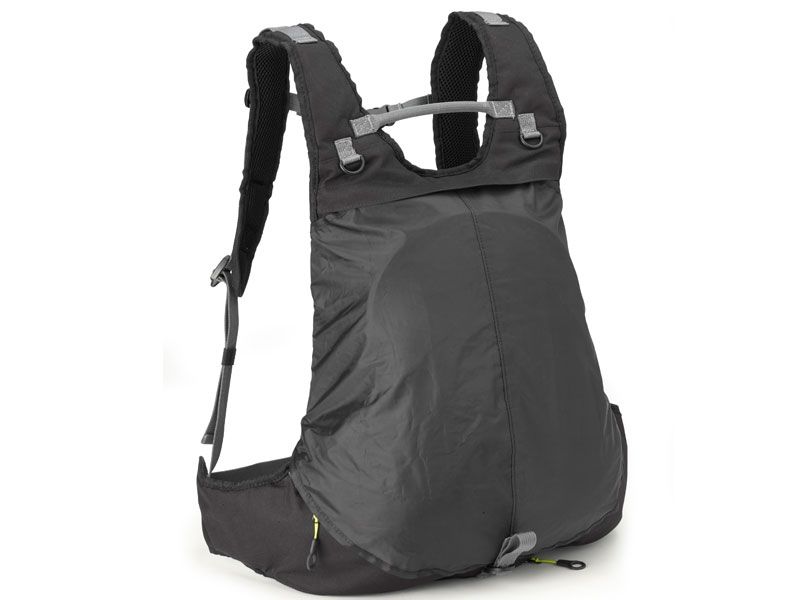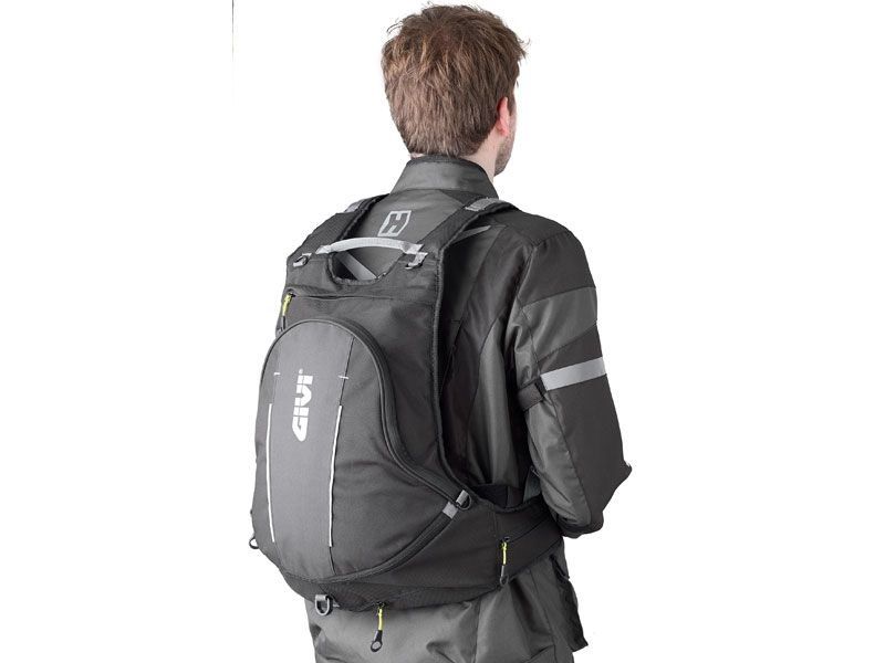 Bolsa mochila motorista Givi EA104B porta-casco expandible (Línea Easy-T Range). La nueva mochila porta-cascos Givi EA104B es ahora más estilizada y elegante, sustituye al modelo anterior EA104. Gracias a su volumen total de 22 litros, permite albergar un casco integral o modular sin ningún tipo de problemas. La mochila Givi EA104B posee unos refuerzos en las esquinas inferiores que le aporta resistencia y durabilidad. Realizada en tejido 600D PU y base antideslizante, todos los materiales de la bolsa Givi EA104B cumplen con la normativa Europea Reach n. 1907/2006.