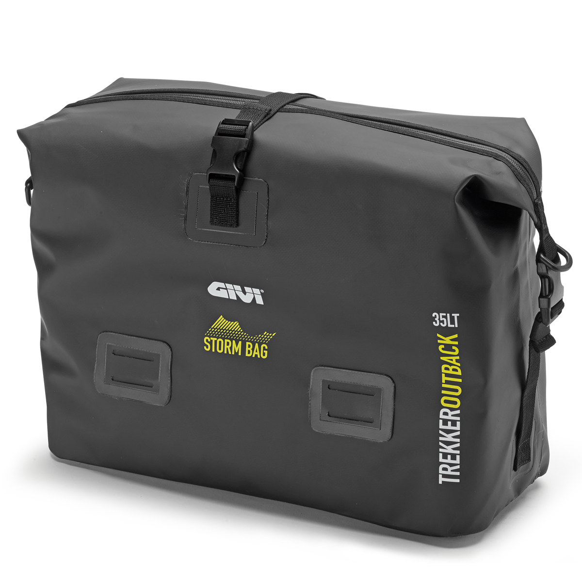 Bolsa Givi T506. Bolsa interna waterproof para maleta Trekker Outback 37 litros. Está realizada en PVC Tarpaulin 500D, soldada a alta frecuencia, sin costuras. Todo el producto está fabricado según la normativa Reach. Puede ser utilizada también sobre la tapa de la maleta, o como bolsa de sillín fijándola con los elásticos incluidos.