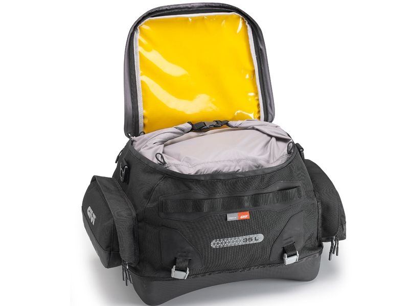Bolsa sillín Givi UT805. Bolsa cargo para sillín y porta paquetes Givi UT805 con bolsa interna waterproof y con una capacidad de 35 litros. Ofrece gran durabilidad y resistencia gracias a su confección en materiales como el Poliéster 1200D W/R y el Hypalon.