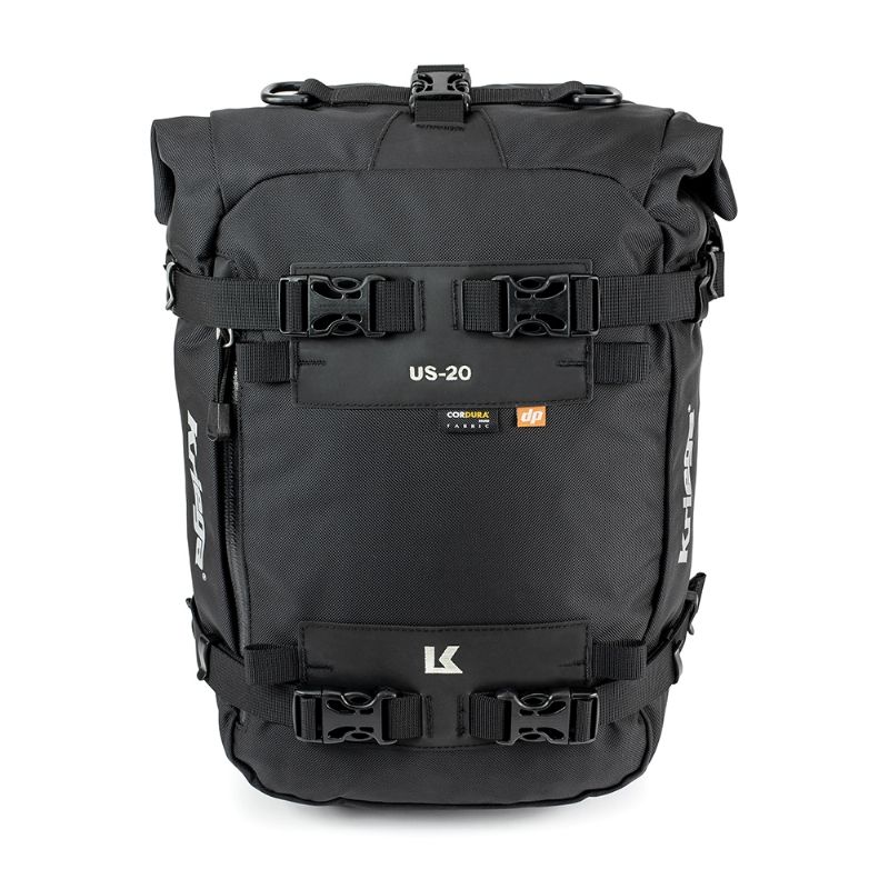 Bolsa Kriega US-20 Drypack Cordura KUSC20. La nueva bolsa de moto Kriega US-20 Drypack es amplia, 100% impermeable y muy versátil. Su diseño universal permite el montaje en el asiento de la gran mayoría de motos (cinchas incluidas). Esta práctica bolsa también se puede fijar en el depósito con el accesorio opcional KUSTK. El sistema de fijación consta de 4 clips de liberación rápida con unas hebillas especiales realizadas en aluminio 6061-T6 y que garantizan la máxima robustez, practicidad y rapidez. de montaje. La funda interior se puede extraer fácilmente para lavarla o reemplazarla en caso necesario. Dispone de una red exterior portaobjetos y un bolsillo también exterior totalmente impermeable. Todas las cremalleras de la bolsa Kriega US-20 Drypack son YKK termoselladas. Todas las bolsas pueden conectarse entre sí como si se tratara de un puzzle obteniendo hasta 70 litros de capacidad. Los tamaños disponibles son de 5, 10, 20 y 30L.