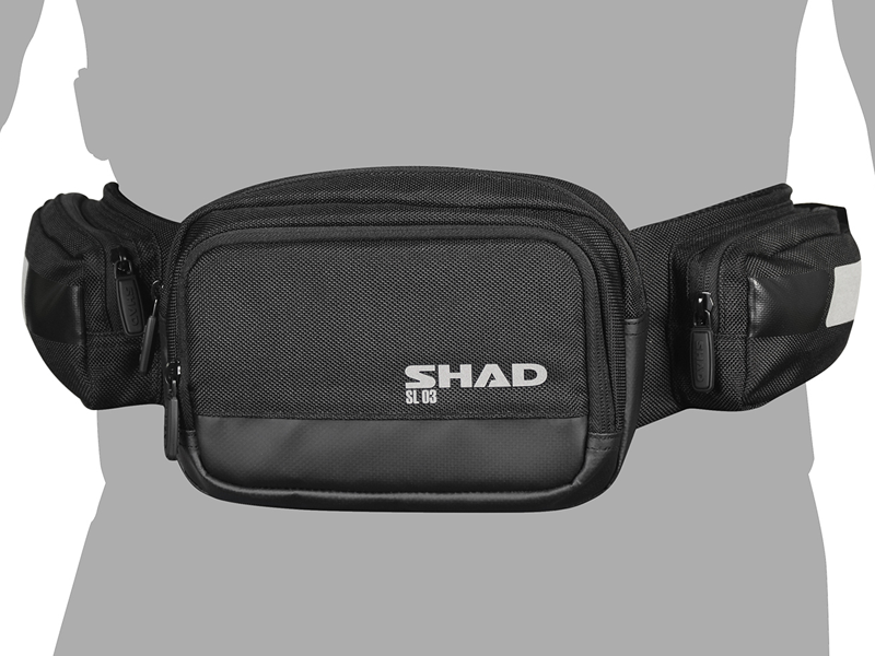 Bolsa Riñonera Shad SL03 X0SL03. Bolsa multiusos con 3 litros de capacidad, realizada en Polyester muy duradero y diseñada para largas rutas. La nueva Riñonera Shad SL03 incorpora 2 correas; una ajustable y otra acolchada para reducir la presión en los músculos de la espalda y la columna. Gracias a su capacidad, es ideal para transportar en moto todos los efectos personales, además de una cámara u otros pequeños accesorios.
