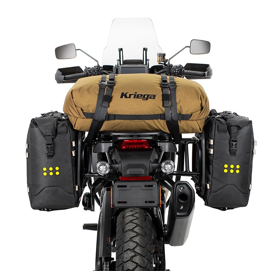 - Sin Modificaciones Necesarias: Para instalar la Kriega Rollpack de 40L no se requieren modificaciones en la moto, haciendo de su montaje un proceso simple y rápido.
