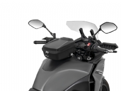 El innovador Click System es la clave de su diseño. Su avanzada tecnología, actualmente en proceso de patente, no solo garantiza una instalación rápida y sencilla, sino que su sistema de extracción, activado por un pulsador, se convierte en un juego de niños. Pero no es solo funcionalidad: su diseño se entrelaza con el depósito de la moto para formar una combinación estética inigualable.