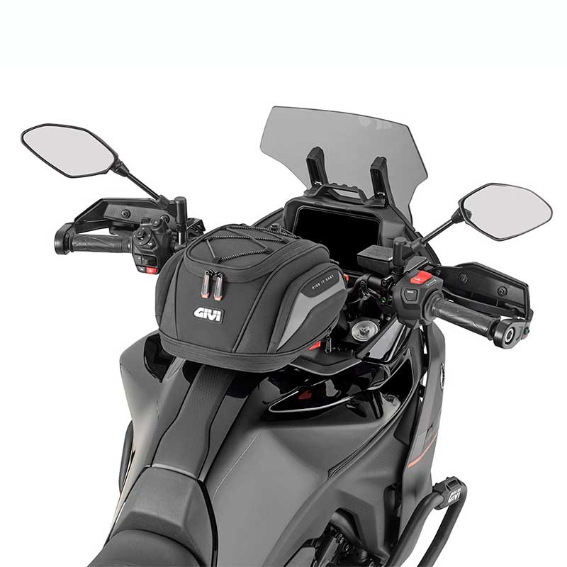 Las imágenes mostradas son orientativas: en algunas fotos pueden aparecer bases Seatlock, aros Tanklock u otros accesorios Givi que no están incluidos con la bolsa sillín Givi EASY07 Easy-T. Revisa siempre el contenido del suministro indicado.
