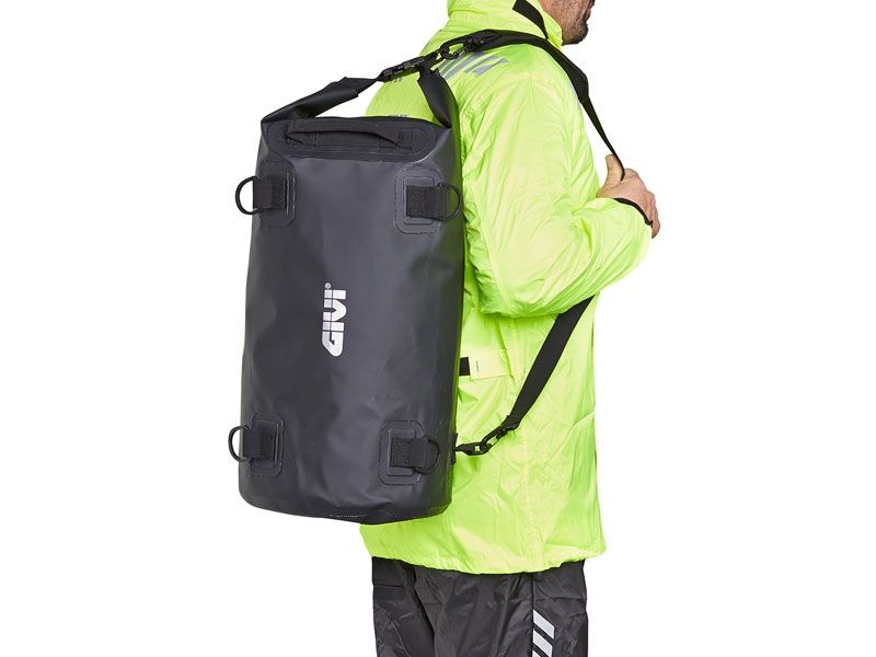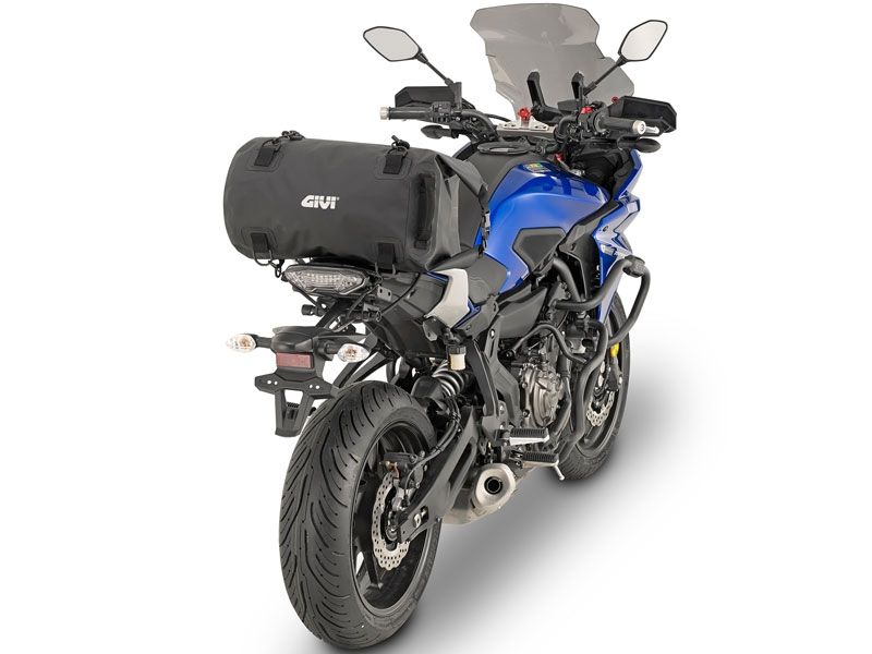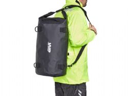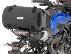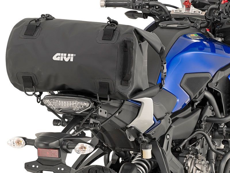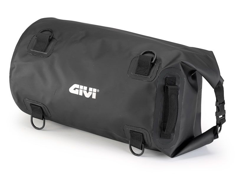 Bolsa sillín Givi EA114BK Negro (Línea Easy-T Range). Bolsa de sillín Givi EA114 con diseño cilíndrico y capacidad total de 30 litros. Su construcción en PVC Tarpaulin con soldaduras a alta frecuencia (sin costuras) y su cierre enrollable, garantizan la total impermeabilidad.