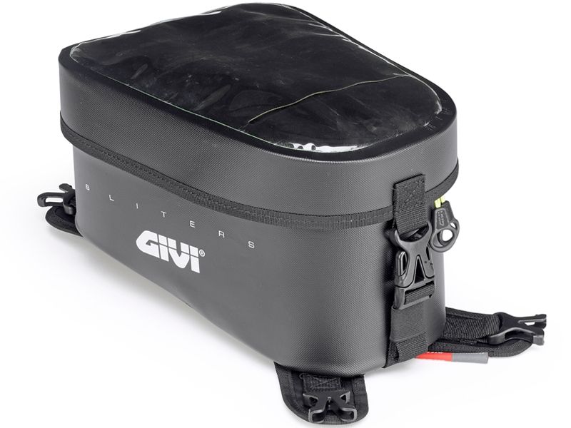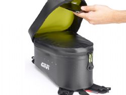 Bolsa depósito Givi GRT716. Bolsa de depósito universal Givi GRT716 impermeable con 10 litros de capacidad. Fabricada en Nylon 840D TPU de doble revestimiento con soldadura de alta frecuencia para una impermeabilidad total IPX5. La fijación a la moto se realiza con unas correas que se incluyen al adquirir la bolsa Givi GRT716.