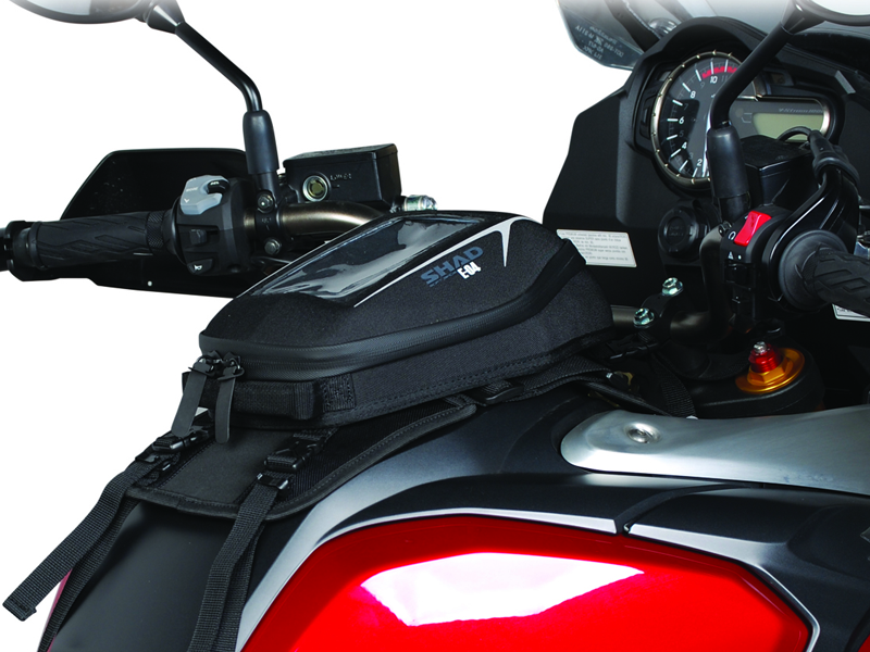 Bolsa sobredepósito Shad Tank Bag E-04 X0SE04. Nueva bolsa de depósito Shad E-04 de pequeña capacidad y muy útil para transportar neceseres tales como móviles, llaves, carteras, etc.. Con un diseño semirígido y elementos reflectantes que aumentan la visibilidad, la E-04 de Shad se convierte en una bolsa muy práctica para el día a día en moto. Dispone de una pantalla transparente táctil que permite el manejo de dispositivos. La fijación a la moto es muy sencilla gracias a una base universal de depósito (Incluida).