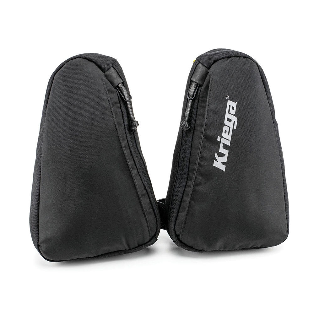 Bolsillos adicionales Kriega Trail Pockets KKTPO. Con estos bolsillos podrás añadir 2 litros de almacenamiento frontal de fácil acceso a cualquier mochila Kriega con un arnés Quadloc Lite. Cada bolsillo dispone de 1 litro de capacidad y está realizado en resistente Cordura 1000D y nylon 420D. Dispone de dos compartimentos de acceso con cremallera YKK, ideales para llevar un Smartphone, cartera, GPS, barras energéticas o cualquier otro accesorio al que necesite tener acceso durante el viaje. Los bolsillos se sujetan de forma segura a cada lado del arnés con presillas y clips de bloqueo e incluyen una hebilla de arnés adicional para mejorar la estabilidad de la mochila y la distribución del peso.