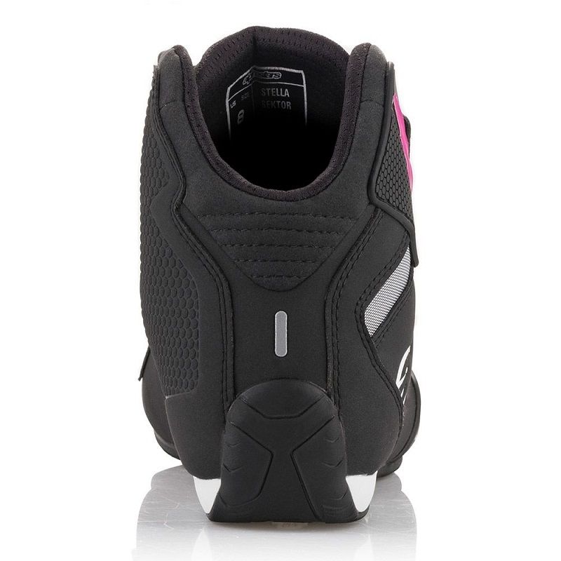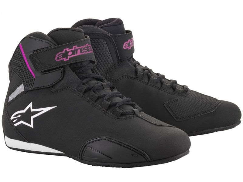 Botas Alpinestars Stella Sektor Lady Negro / Fucsia. Las nuevas Stella Sektor de Alpinestars han sido concebidas para ofrecer la máxima comodidad, flexibilidad y ligereza en el ámbito urbano. Estas zapatillas combinan a la perfección diseño y protección con soluciones técnicas innovadoras. Confeccionadas en microfibra de alta tecnología, las Sektor incorporan con un sistema de lazada rápido desarrollado en la Fórmula 1, suela diseñada para ofrecer un óptimo agarre sobre cualquier superficie y protecciones situadas en puntos clave.