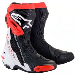 Botas Alpinestars Supertech-R Negro. Alpinestars Supertech R son las botas mas deportivas y avanzadas de la gama Alpinestars racing. En está ultima actualización, Alpinestars ha dotado a las botas Supertech R de los últimos avances tecnológicos para mejorar aún más si cabe, sus características de rendimiento. Alpinestars sigue atentamente las indicaciones de pilotos de la talla de Marc Márquez, Fabio Quartararo, Maverick Viñales, Pecco Bagnaia, etc, para así poder proporcionarles la máxima seguridad. Entre las numerosas mejoras que ha recibido las Supertech R, cabe destacar la nueva área de flexión delantera, el fuelle posterior de nuevo diseño, la nueva protección para la palanca de cambios, las protección de la espinilla con nuevo deslizador y un nuevo botín interior. Todos estos cambios optimizan el confort, la protección y el rendimiento.