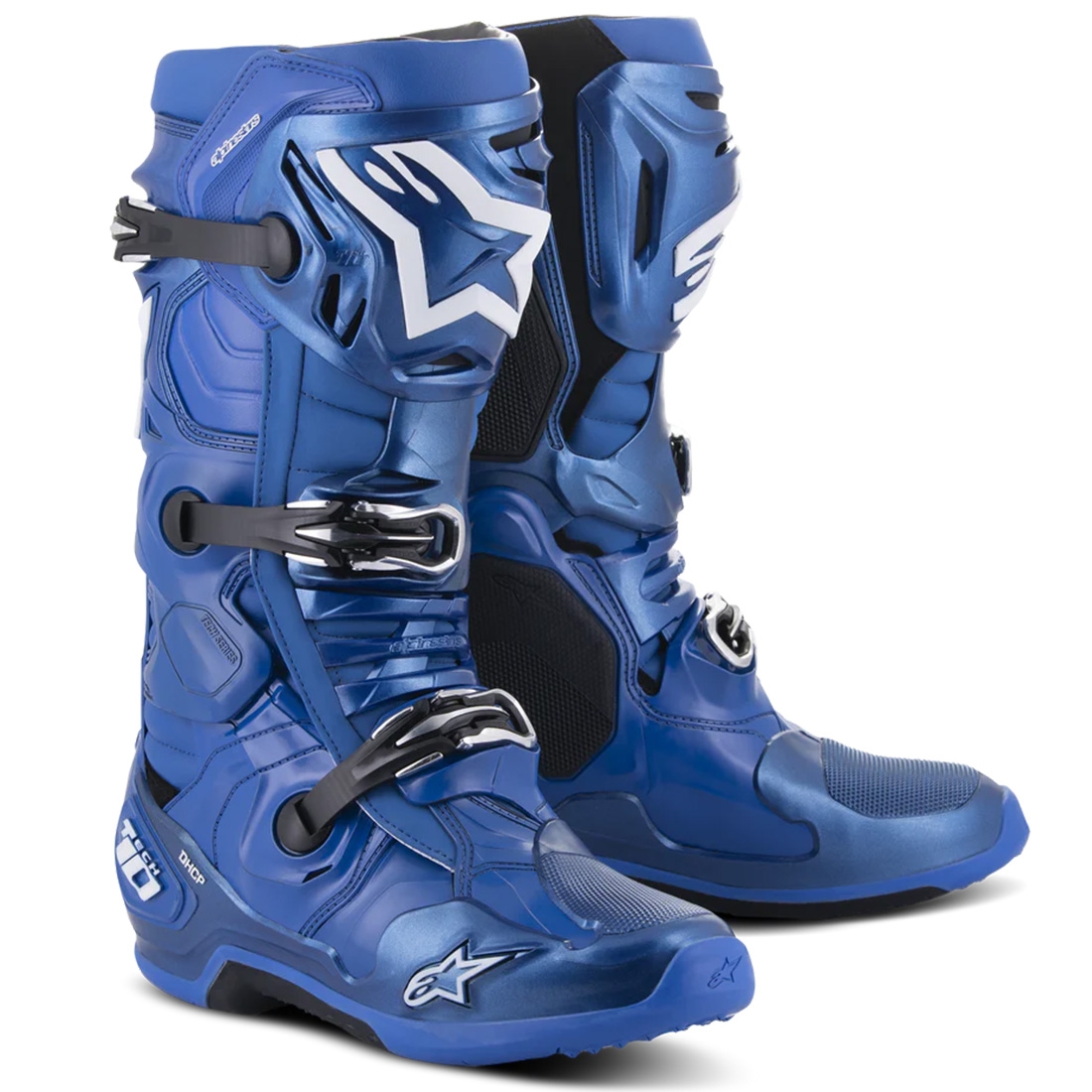 Botas Alpinestars Tech 10 Azul / Negro. Botas diseñadas para la práctica off road con nuevos avances que la hacen más técnica en todos los niveles. Cuenta con unos materiales innovadores y un diseño completamente nuevo caracterizado por ser más ligero y con mayor confort. Fabricada en piel y microfibra que la hacen más ligera con protección de TPU resistente a impactos y a la abrasión. La estructura de las botas Tech 10 de Alpinestars ha sido fabricada con un doble sistema de cierre de velcro y hebillas ligeras y duraderas muy fáciles de usar. Presenta una exclusiva suela de doble compuesto para ofrecer durabilidad, agarre y un tacto excepcional.