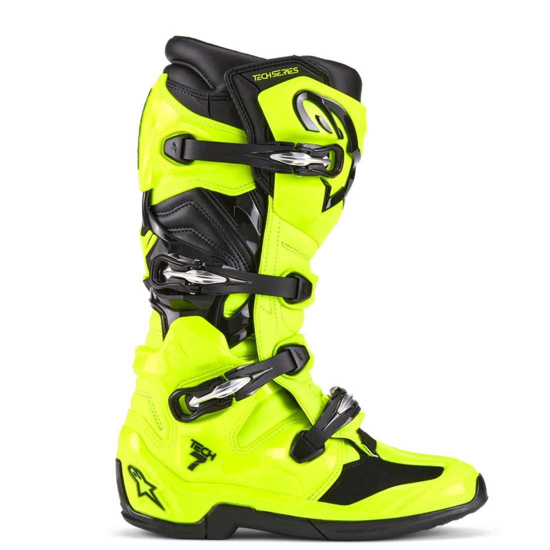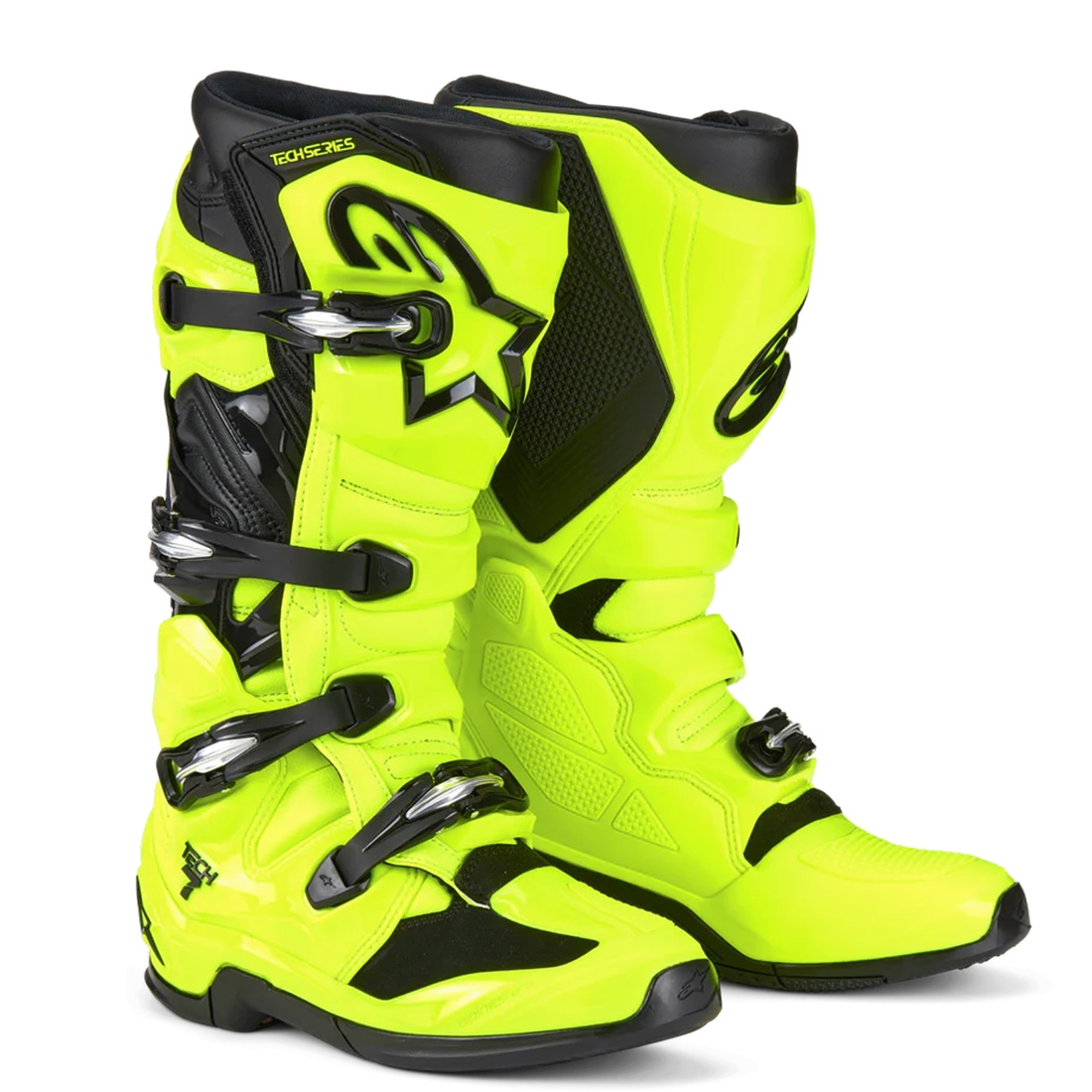 Botas Alpinestars Tech 7 Amarillo Fluo / Negro. Botas Alpinestars Tech 7: control, protección y comodidad off-road. Las nuevas botas Alpinestars Tech 7 elevan el rendimiento off-road a un nuevo nivel, combinando innovación tecnológica, protección avanzada y un diseño pensado para ofrecer máxima sensibilidad sobre la moto. Rediseñadas en todos los aspectos, las Alpinestars Tech 7 destacan por su ligereza, flexibilidad y su capacidad para responder con precisión en cualquier situación, ya sea en motocross, enduro o supercross.
