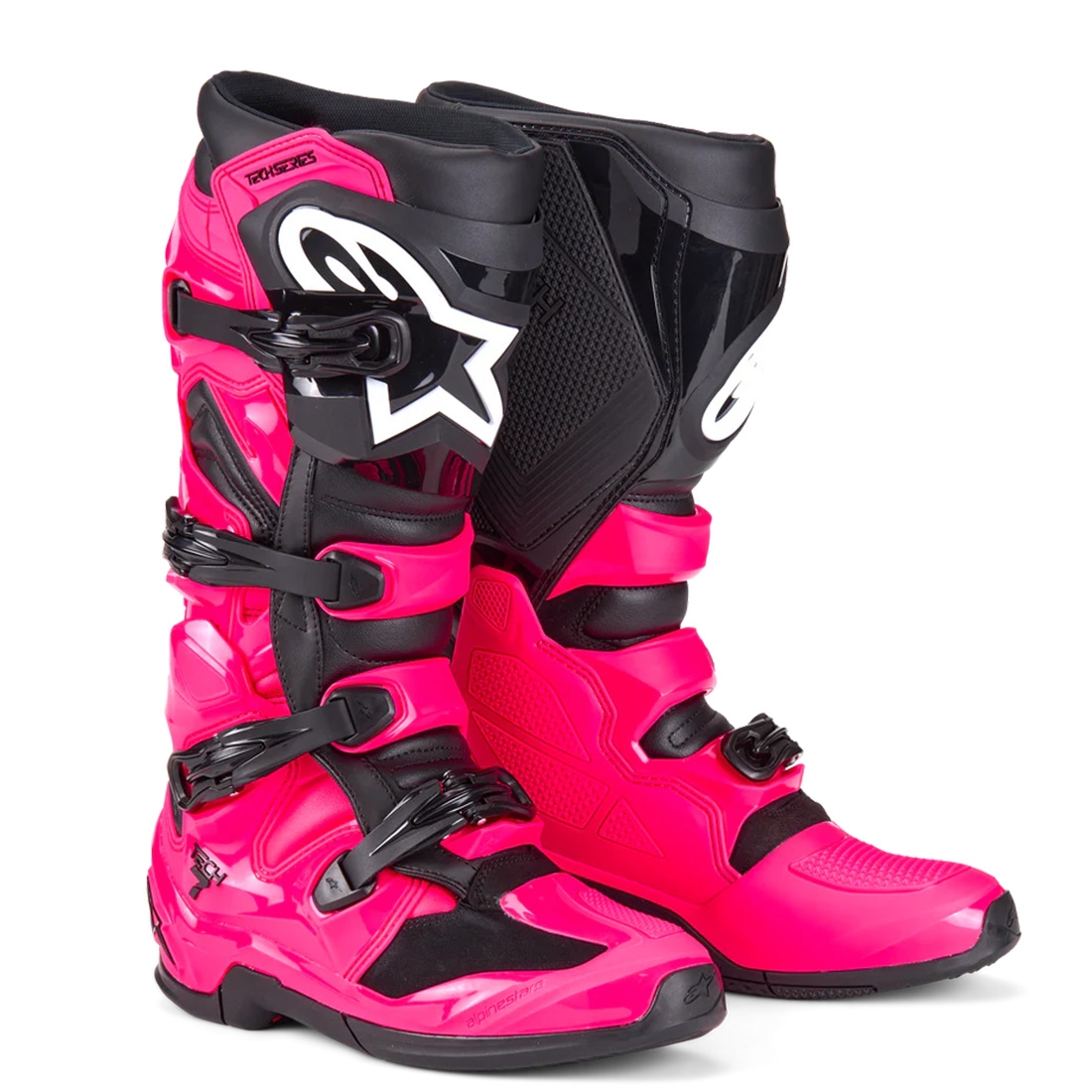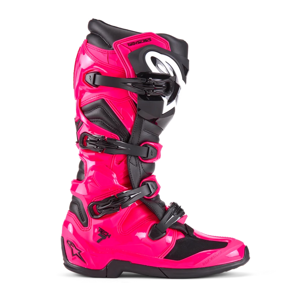 Botas Alpinestars Tech 7 Diva Rosa / Negro. Botas Alpinestars Tech 7: control, protección y comodidad off-road. Las nuevas botas Alpinestars Tech 7 elevan el rendimiento off-road a un nuevo nivel, combinando innovación tecnológica, protección avanzada y un diseño pensado para ofrecer máxima sensibilidad sobre la moto. Rediseñadas en todos los aspectos, las Alpinestars Tech 7 destacan por su ligereza, flexibilidad y su capacidad para responder con precisión en cualquier situación, ya sea en motocross, enduro o supercross.