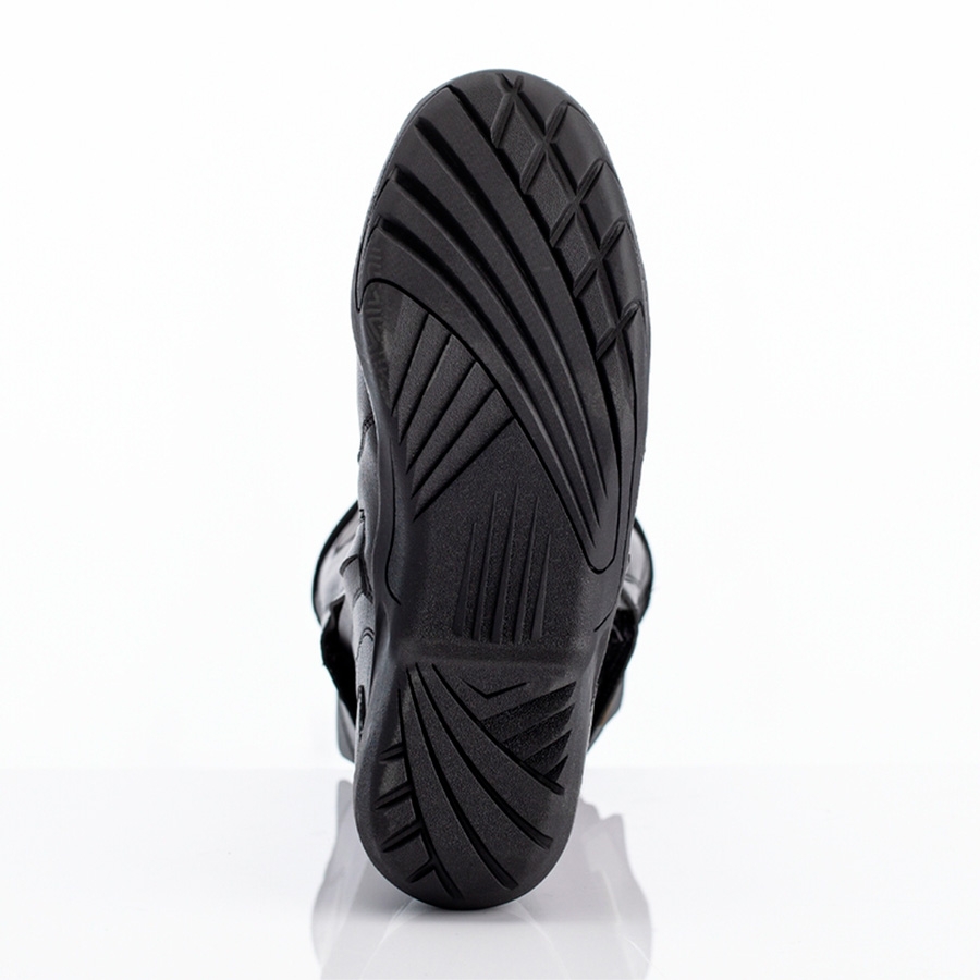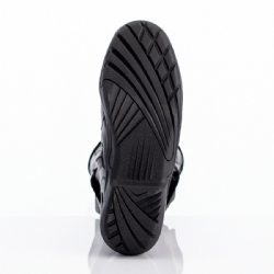 Su suela está pensada específicamente para viajar: surcos profundos y un dibujo resistente que aporta agarre tanto en la moto como caminando.