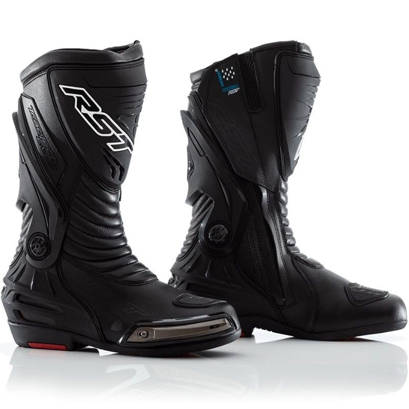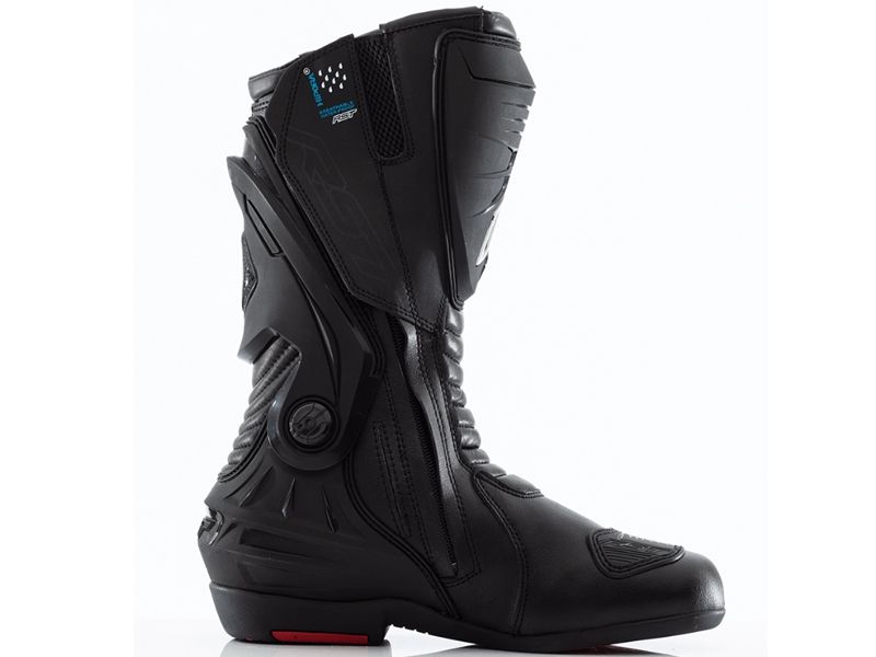 Botas RST Tractech Evo 3 Sport Waterproof Negro. Las nuevas botas RST Tractech Evo 3 Sport Waterproof están diseñadas para una conducción deportiva cómoda y segura. Ofrecen excelente confort, gracias a los amplios paneles de piel acordeón. Estos paneles están ubicados en la zona delantera de la bota para ofrecer mayor movilidad, tanto encima de la moto como fuera de ella. La nueva suela resistente al desgaste, está unida al talón y este a su vez unida al tobillo para así poder evitar la extensión del mismo. La protección de la tibia ha sido rediseñada para ofrecer una protección extra contra a los impactos. La versión Waterproof dispone de membrana ideal para combatir los días de lluvia.