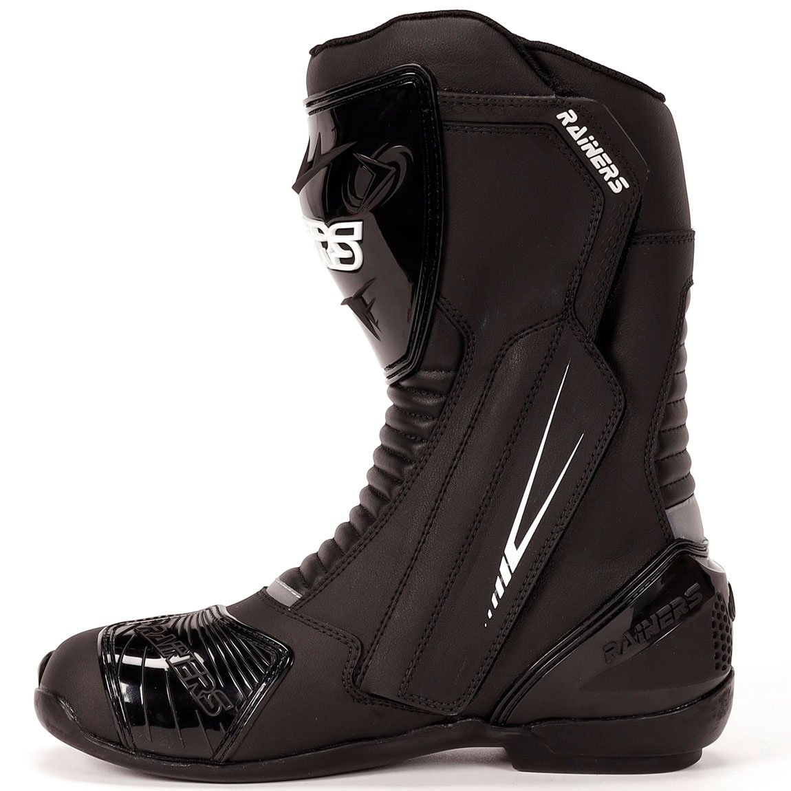 Botas Rainers 690 Negro. Las nuevas botas deportivas para moto Rainers 640 son el modelo más básico de la gama de botas racing del fabricante Rainers. Su diseño es uno de los más elegantes y actuales de Rainers, unas botas que se caracterizan por ser muy cómodas, flexibles y muy suaves. Confeccionadas en microfibra de alta tecnología, las 640 de Rainers llevan deslizadores incorporados en la puntera para que puedas cambiarlos si tiendes a rozarlos. Además, cuenta con protecciones estratégicamente ubicadas para mayor seguridad.