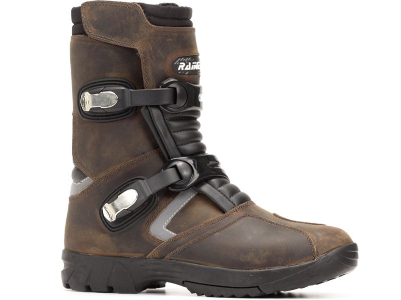 Botas Rainers Andes. Nuevas botas touring Rainers Andes (colección 2019) de caña baja. Se caracterizan por ofrecer altos niveles de confort y flexibilidad, gracias a su confección en piel flor de excelente calidad y a los paneles de microfibra en acordeón ubicados en la zona delantera y trasera. El sistema de doble cierre con hebillas regulables de aluminio y velcro en la zona superior, aportan una óptima sujeción al pie. Disponen de protecciones en el tobillo y un diseño de suela estudiado para evitar resbalones en diferentes tipos de terreno y clima. Sin duda las botas Rainers Andes son una alternativa muy atractiva a las tradicionales botas touring de caña alta.