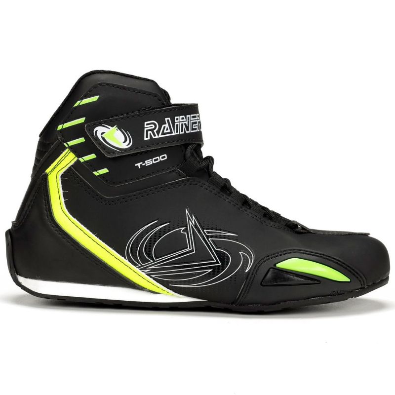 Botas Rainers T-500 Plus Negro / Amarillo Fluor. Conoce las botas cortas de moto Rainers T-500 Plus, una obra maestra del calzado motero fabricado por Rainers, una marca de referencia en indumentaria para motoristas. Estas botas representan la evolución del ya aclamado modelo T-500, mejorando en diseño, comodidad y protección. Están pensadas para quienes buscan un calzado de moto que combine la estética con la seguridad. Y con la ventaja añadida de ser producidas en España, aseguran calidad y autenticidad en cada detalle.