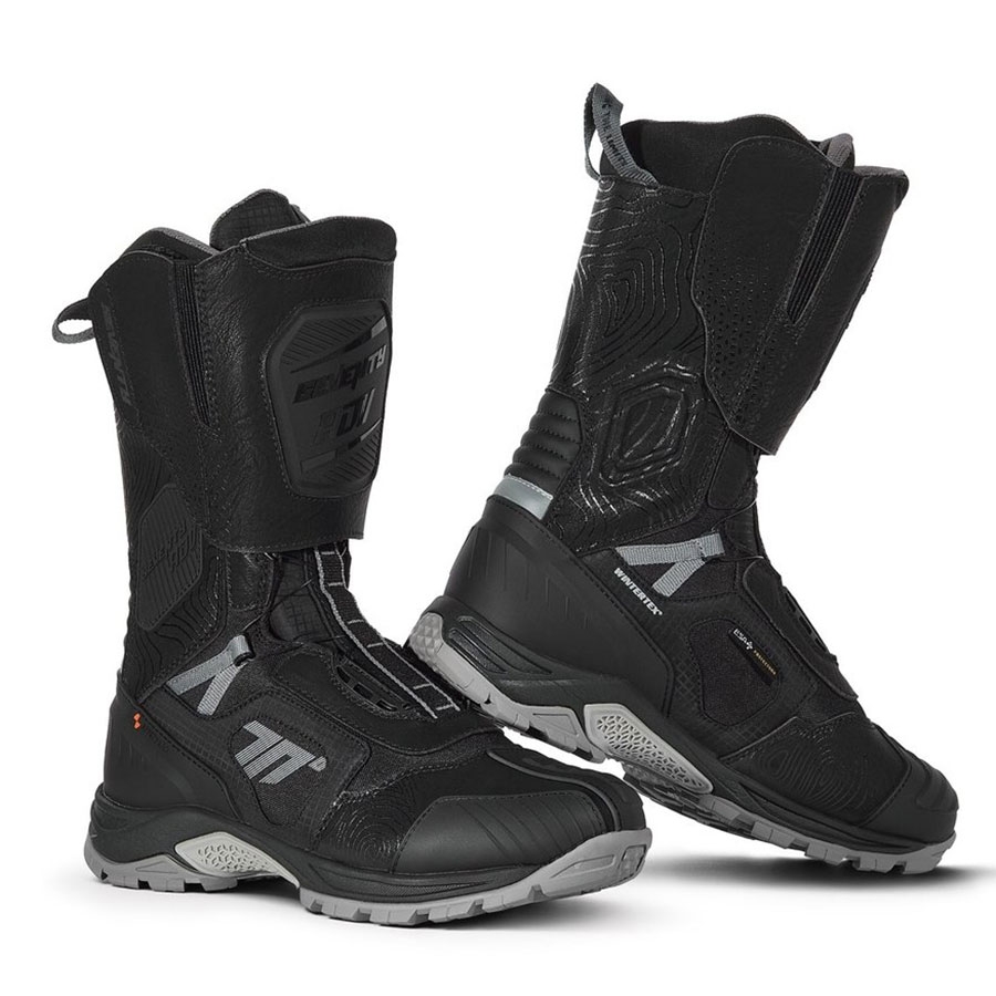 Botas Seventy Degrees SD-BA6 Stelvio Alta Negra / Gris. Las botas Seventy Degrees SD-BA6 Stelvio Alta de la colección 2024 son la elección perfecta para los motociclistas que buscan una combinación de estilo, comodidad y protección en sus aventuras. Estas botas unisex de caña alta están diseñadas para el estilo adventure/touring y fabricadas con materiales de alta calidad, incluyendo piel sintética con acabado PU y Nylon.