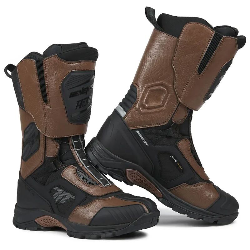 Botas Seventy Degrees SD-BA6 Stelvio Alta Negra / Marrón. Las botas Seventy Degrees SD-BA6 Stelvio Alta de la colección 2024 son la elección perfecta para los motociclistas que buscan una combinación de estilo, comodidad y protección en sus aventuras. Estas botas unisex de caña alta están diseñadas para el estilo adventure/touring y fabricadas con materiales de alta calidad, incluyendo piel sintética con acabado PU y Nylon.