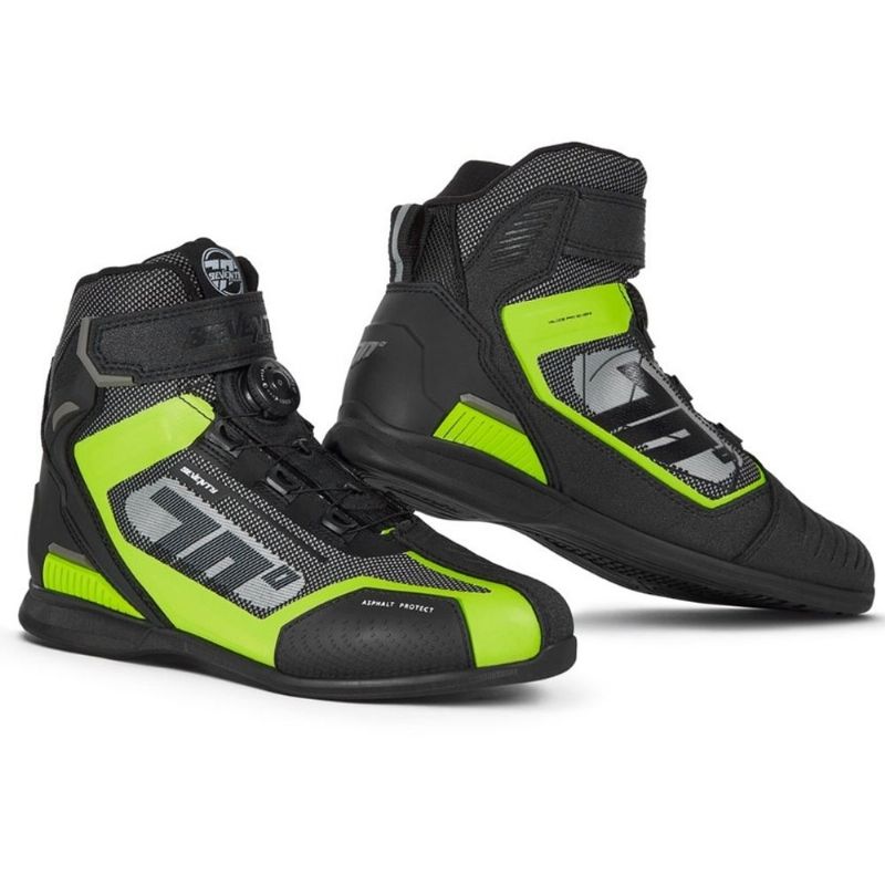 Botas Seventy Degrees SD-BR3 Veloce Pro Negro / Amarillo Fluor. Descubre la fusión perfecta de tecnología y diseño con las botas Seventy Degrees SD-BR3 Veloce Pro. Diseñadas para los entusiastas del motociclismo que buscan rendimiento y seguridad, estas botas unisex de estilo racing y caña baja están elaboradas con microfibra de alta calidad y tejido AIRKNIT, garantizando una durabilidad excepcional y un ajuste confortable.