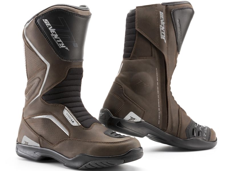 Botas Seventy Degrees SD-BT2 Marrón. Elegantes botas de turismo de caña alta caracterizadas por ofrecer una excelente calidad y comodidad. Confeccionadas en piel con acabado PU y nylon, las botas Botas Seventy Degrees SD-BT2 incorporan la eficaz membrana impermeable WinterTex y forro de malla suave de poliéster micro-transpirable para un óptimo confort. Estas botas homologadas disponen de protecciones estratégicamente ubicadas además de un sistema de cierre diseñado para ofrecer un gran ajuste al pie.