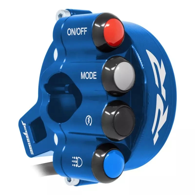 Botonera para puño de gas integrado Jetprime JPACC008RRLB BMW S 1000 RR 2015 2020 Azul Racing / Grabado láser / Serigrafia RR. La botonera Jetprime para puño de gas integrado está diseñada para ofrecer el máximo rendimiento en la BMW S 1000 RR en su versión Racing. Este sistema combina el control del acelerador electrónico y los mandos eléctricos originales en una sola unidad compacta y resistente, especialmente pensada para uso en circuito y competición.