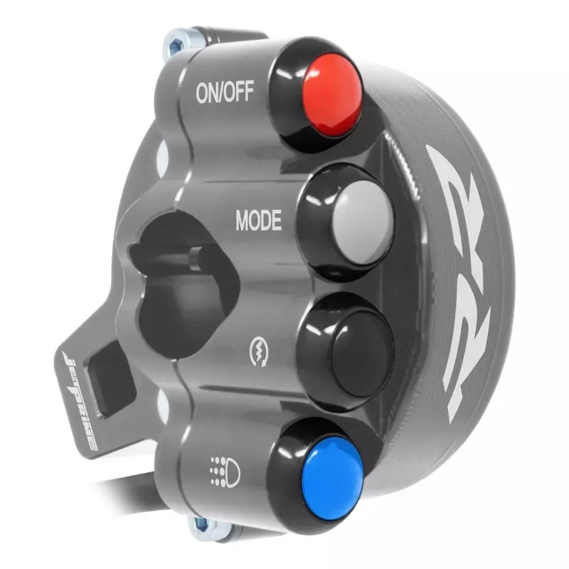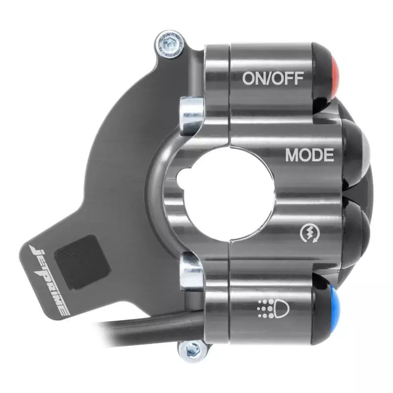 Botonera para puño de gas integrado Jetprime JPACC008RRLT BMW S 1000 RR 2015 2020 Titanio Racing / Grabado láser / Serigrafia RR. La botonera Jetprime para puño de gas integrado está diseñada para ofrecer el máximo rendimiento en la BMW S 1000 RR en su versión Racing. Este sistema combina el control del acelerador electrónico y los mandos eléctricos originales en una sola unidad compacta y resistente, especialmente pensada para uso en circuito y competición.