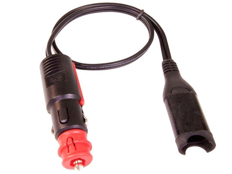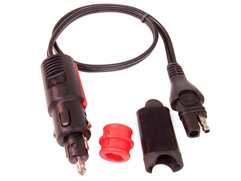 Cable conector Tecmate OptiMate O-02. Tecmate OptiMate O-02 es un adaptador conector SAE que en todos los coches con toma de mechero de 21 mm y motos con toma DIN de 12 mm. La alimentación se realiza a travez de un conector SAE con 2 polos estándard del sector. El cable está diseñado por Tecmate y cuenta con gran calidad, de echo su garantía son 3 años.
