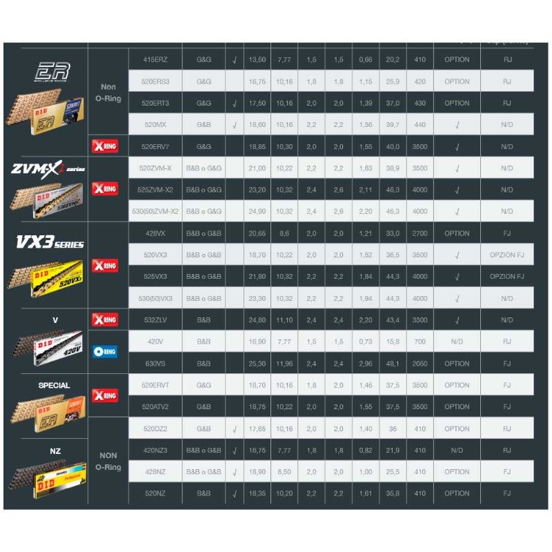 Cadena DID 520 ZVM-X Oro 120 Pasos. La DID 520 ZVM-X Oro es una cadena de transmisión de alto rendimiento, reconocida por su resistencia, precisión y durabilidad incluso en motos de gran cilindrada. Fabricada en Japón con la avanzada tecnología X-Ring de DID, ofrece una fricción reducida y una vida útil hasta un 50% superior frente a cadenas convencionales.