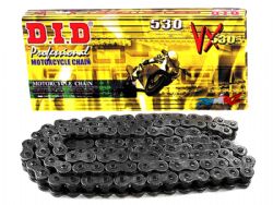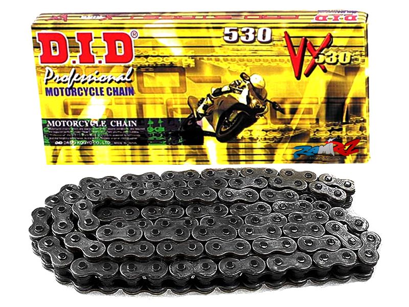 Cadena Did 530VX X 106 ZB. La cadena DID VX X-Ring posee una resistencia al desgaste excepcional. El sistema de sellado X-Ring con cuatro puntos de contacto (Aros en X) y patentados por DID, incrementan enormemente la capacidad de sellado, impiden la entrada de suciedad y la salida del lubricante es mucho mayor que en cualquier otra cadena de moto. Además, las cadenas con X-Ring tienen mayor resistencia al desgaste que el resto de cadenas. La construcción de las cadenas DID con sistema X-Ring garantizan una reducción de la fricción ya que su acción de giro distribuye la presión y minimiza la pérdida de potencia. El cierre se realiza mediante remache.