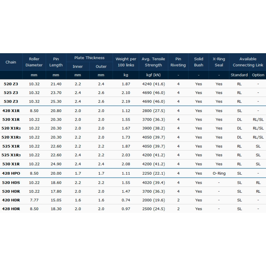Características técnicas cadena JT X1R3 X-Ring