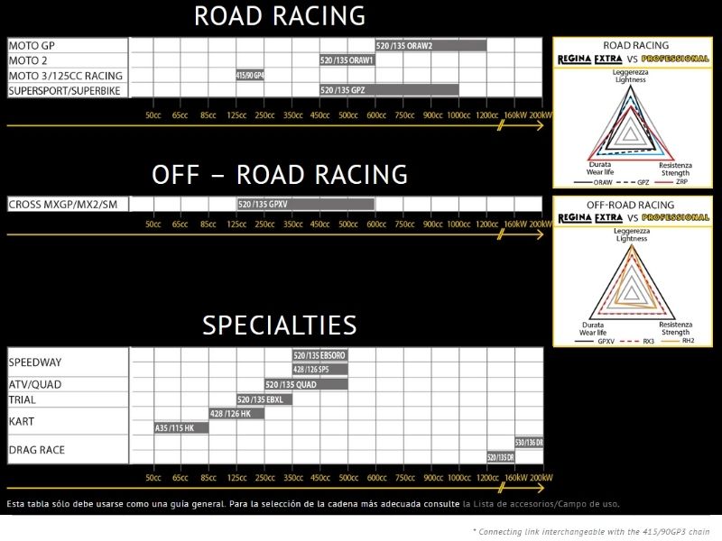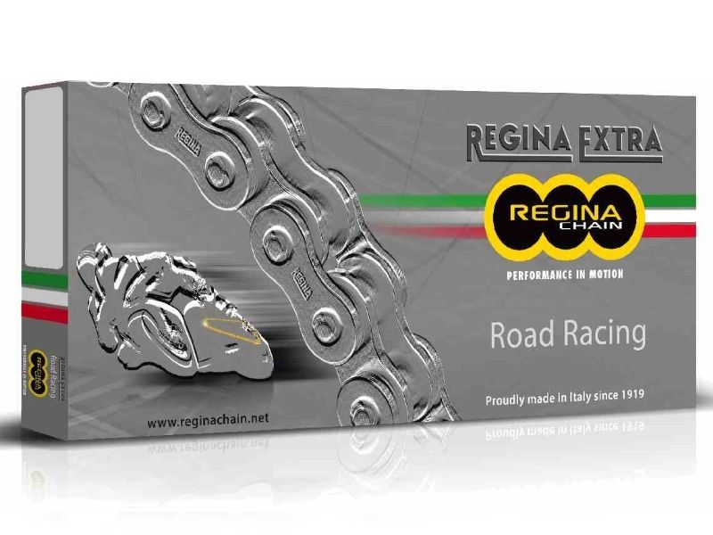 Cadena Regina 520 ORAW1 Moto 2 120 Pasos 135ORAW1/1001. La cadena Regina ORAW1 pertenece a la gama Regina EXTRA Road Racing y es el máximo exponente en cadenas para competición en velocidad. La cadena Regina EXTRA Road Racing ORAW1 se usan en la categoría de Moto2 y las cadenas ORAW2 en MotoGP por los equipos equipos oficiales. Esta cadena es ensamblada a mano con una precisión absoluta. Se suministra con eslabón remachable (tipo 19) para que el profesional pueda instalarla adecuadamente con su herramienta específica.