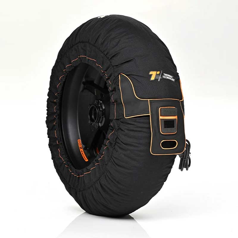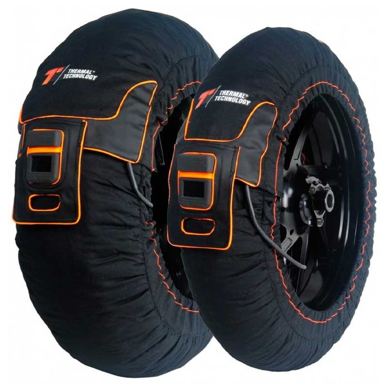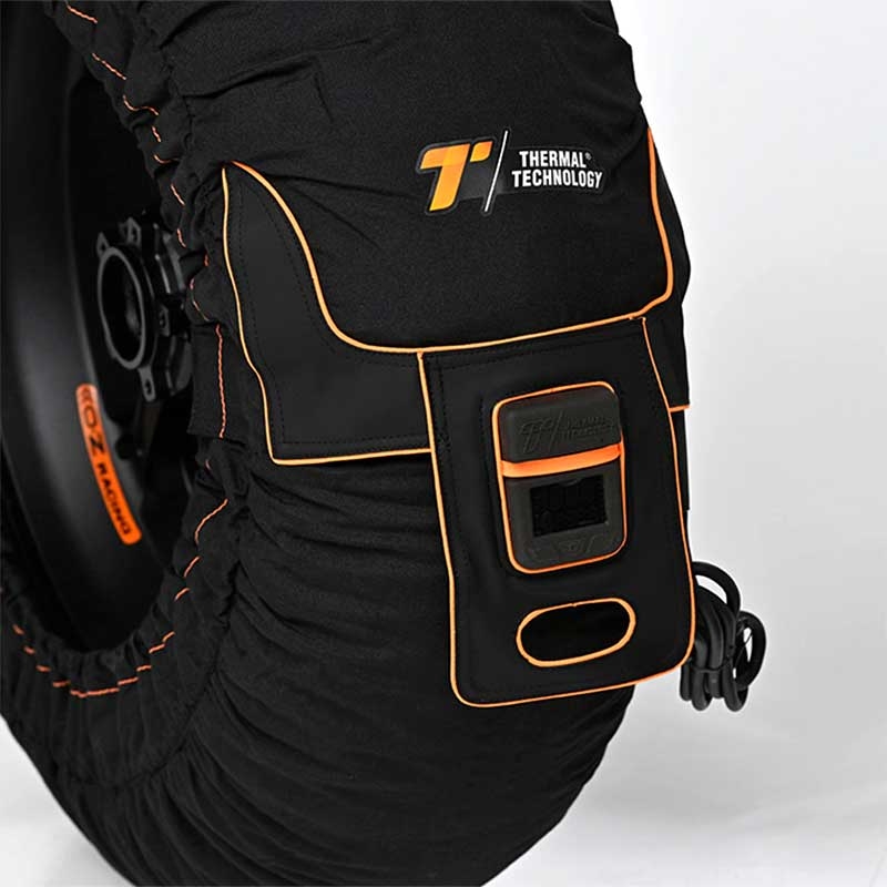 Calentadores Thermal Technology Evo Dual Zone Stock 1000 120-180-200 Talla XL. Calentadores de neumáticos Thermal Technology Evo Dual Zone para moto en Ramírez Moto. Los calentadores Evo Dual Zone representan la gama profesional de Thermal Technology, utilizados en campeonatos como Supersport, Stock 1000, Superbike y Moto2. Gracias a su sistema de doble zona de calefacción y control electrónico integrado, garantizan una temperatura uniforme y ajustable grado a grado hasta 120°C en toda la superficie del neumático.
