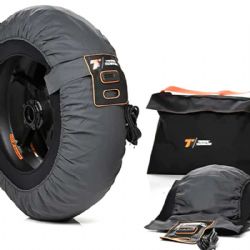 Los calentadores XXL son compatibles con neumáticos delanteros 125/70 – 125/75 y traseros 190/60 – 200/60 – 200/75. Para otras medidas, consulta la tabla de tallas de Thermal Technology.