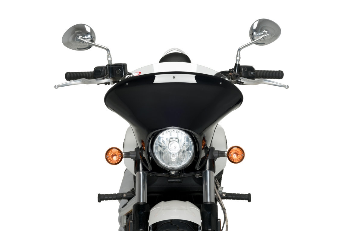 Carenabris Batwing SML Sport Puig 21071W Indian Scout Transparente. El carenabris de moto Puig Batwing SML Sport cuenta con una carcasa plástica negra y una pantalla realizada en material PMMA que se puede ajustar en dos alturas diferentes. Este carenabris dispone del kit de tornillería específico para cada modelo de moto. Está disponible para los modelos custom más populares como Harley Davidson, Honda, Indian, BMW, Kawasaki, Suzuki y Yamaha.