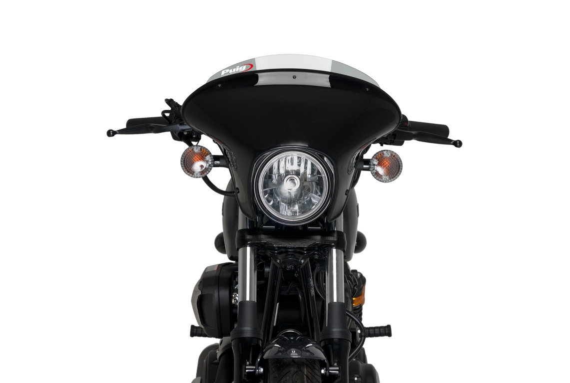 Carenabris Batwing SML Sport Puig 21077H Yamaha XV950/R Ahumada. El carenabris de moto Puig Batwing SML Sport cuenta con una carcasa plástica negra y una pantalla realizada en material PMMA que se puede ajustar en dos alturas diferentes. Este carenabris dispone del kit de tornillería específico para cada modelo de moto. Está disponible para los modelos custom más populares como Harley Davidson, Honda, Indian, BMW, Kawasaki, Suzuki y Yamaha.