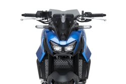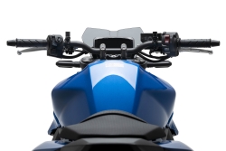 Con un diseño compacto y angular, el carenabris Puig 22423 cubre el cuentakilómetros, ofreciendo una superficie aerodinámica limpia que canaliza el aire hacia los laterales y reduce la presión sobre el piloto. Inspirado en la aerodinámica de los aviones de combate, sus formas aportan estabilidad, rigidez y una estética frontal única.