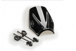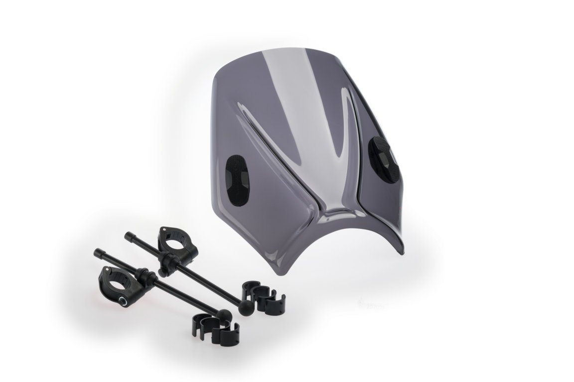 Carenabris Puig 20702F Mito ahumado oscuro. El nuevo carenabris Puig Mito mejora la conducción y proporciona mayor seguridad. Diseñado y fabricado en Barcelona, el nuevo carenabris Puig Mito está fabricado en material acrílico de alto impacto de 3mm y resistente a los UV. Está disponible en acabado transparente, ahumado claro, ahumado oscuro, negro, azul, rojo, verde y naranja. El carenabris Mito es de montaje universal, aunque pueda requerir de ajustes según modelos. Ofrece la opción de montarse al manillar con bridas o bien, con platinas en la horquilla. Sus medidas totales son 285mm de ancho por 320mm de alto. Además, cuenta con cantos redondeados de Ø4mm, hecho que le hace cumplir las normativas europeas de seguridad más estrictas.