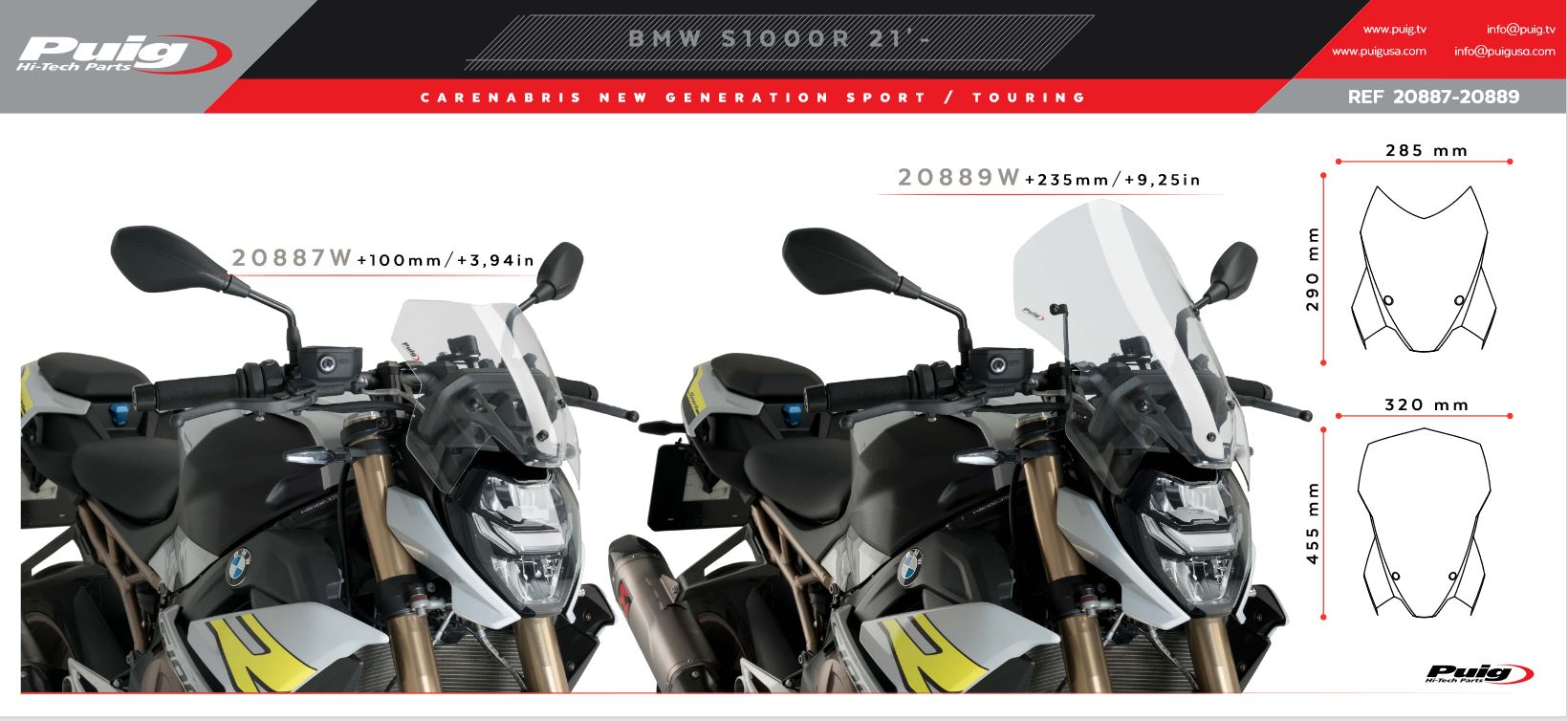 Cúpula Puig 20887N Naked New Generation Sport Bmw S1000 R 2021-2022. Parabrisas Puig 20887 Naked New Generation específica para la nueva Bmw S1000 R 2021-2022 y que gracias a su metracrilato de alto impacto con grosor de 3 mm, ofrece una gran resistencia y excelente fijación a la moto. Esta cúpula ha sido perfectamente estudiada para mejorar la protección del motorista contra el viento. La cúpula Puig Naked New Generation Sport se caracteriza por sus acabados de gran calidad. El montaje de la cúpula es una tarea sencilla y se ajusta a la perfección a la moto. Para facilitar el montaje, Puig sirve junto al carenabris con las correspondientes instrucciones. Homologación ABE 3818 y TÜV. Homologación ABE 3818 y TÜV.